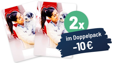Du bist auf der Suche nach einem originellen Geschenk für einen Hundebesitzer oder Tierliebhaber? Dann ist ein Fotogeschenk für Tierbesitzer genau das Richtige. Ein Foto vom eigenen Haustier zu verschenken, ist eine wunderbare Art, Hundefreunde oder Katzenliebhaber glücklich zu machen. Ein Tierfoto als Geschenk macht deshalb so viel Freude, weil es den Tierbesitzer jederzeit an seinen treuen Begleiter erinnert. Wenn Du nach einem originellen Geschenk für Tierliebhaber suchst, findest Du zahlreiche Möglichkeiten: Es gibt vielfältige Angebote, um schöne Tierfotos zu drucken oder produzieren zu lassen. Dein Foto von Katze oder Hund auf einem Acryl Aufsteller zu verschenken ist jedoch etwas ganz Besonderes! Dein Fotogeschenk für Tierfreunde wird mit viel Liebe hergestellt: Unser Grafikteam stellt Dein Wunschmotiv von Hand frei, bevor Dein Tierfoto dann auf 6 mm starkes Acryl gedruckt wird. Gestochen scharfe, brillante Farben lassen Dein Tierfoto ausdrucksstark und exklusiv zur Geltung kommen. Unser Druckverfahren macht es möglich, dass Dein Fotomotiv auch von der Rückseite sichtbar ist. Ein tierisch cooles Fotogeschenk!